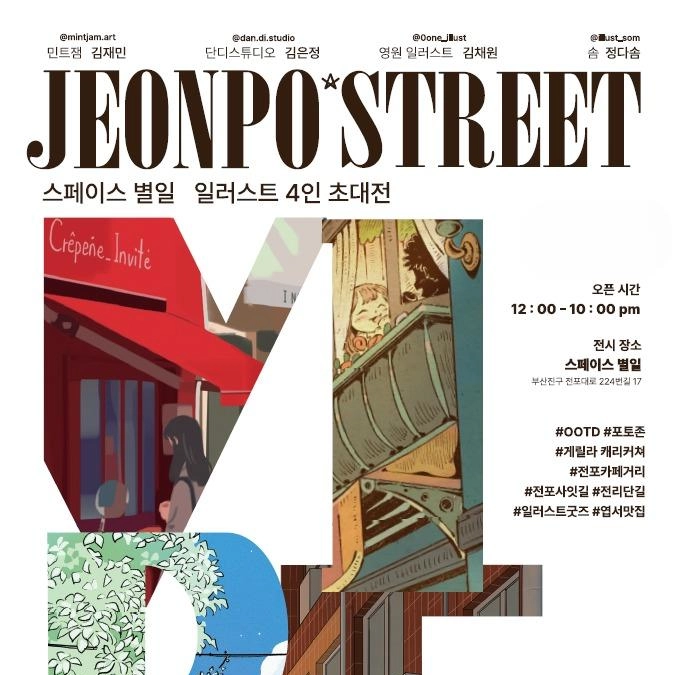 전포 커피 축제를 맞아 거리를 오다니며 잠시 흘려둔 추억의 장면, 익숙한 듯 새로운 전포동의 일상을 4명의 작가가 일러스트로 담아냈습니다.